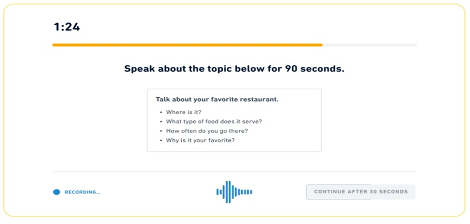 この問題では、90秒の制限時間内に与えられたトピックについて英語で論理的に意見を話し続けることが求められます。トピックには、お気に入りのレストランや映画といった日常生活に関するものから、人生で最も感謝している人や出来事など、日常生活とは直接関係のないものまで幅広く出題されます。