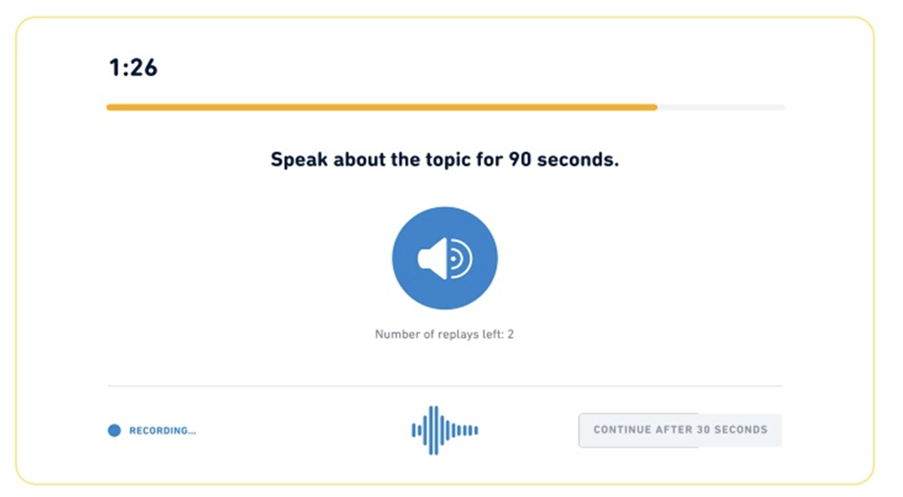 2)音声で聞いた質問に対し30秒以上英語で答えます。最大90秒話すことができます。