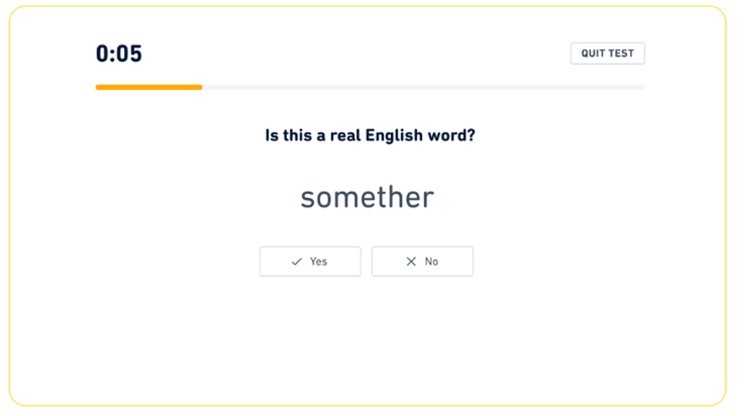 次の単語について、正しい綴りだと思う場合は「Yes」、そうでない場合は「No」を選択してください。